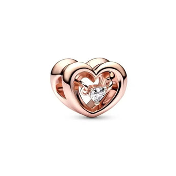 İçi Hareketli Taşlı Rose Kalp Charm, Kalp temasına sahip şık bir Charm. Günlük kullanımda veya özel anlarda tarzınıza zarif bir dokunuş katar.